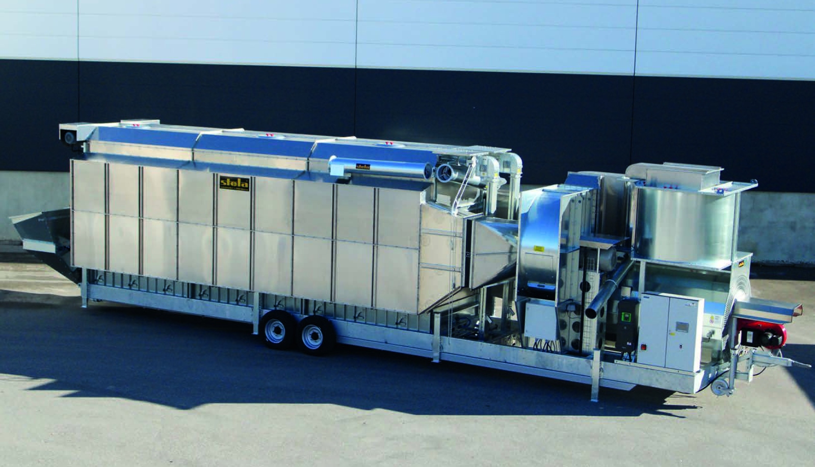 Další novinkou je mobilní pásová sušička STELA BTLA, určená pro flexibilní a šetrné sušení obilnin i speciálních komodit (pohanka, špalda, ostropestřec). Díky kompaktní konstrukci, robustní technologii a vysokému výkonu vzduchu je ideálním řešením pro moderní provozy.